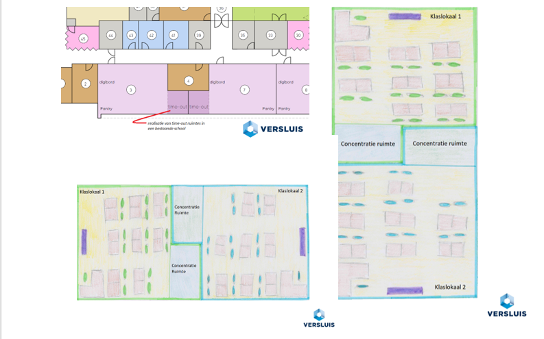 Dankzij bovenstaande illustraties krijgt u een beeld van hoe passend onderwijs er in een schoolgebouw uit kan zien.