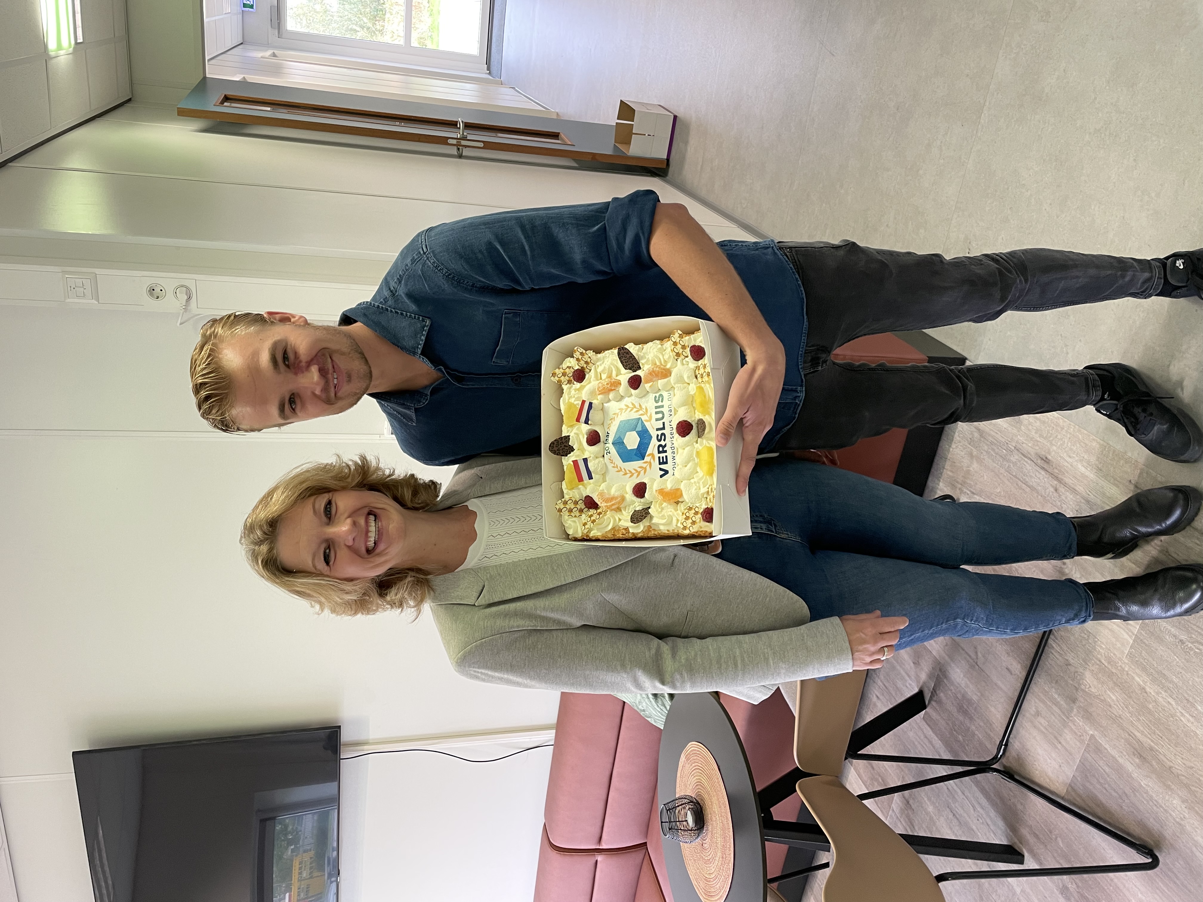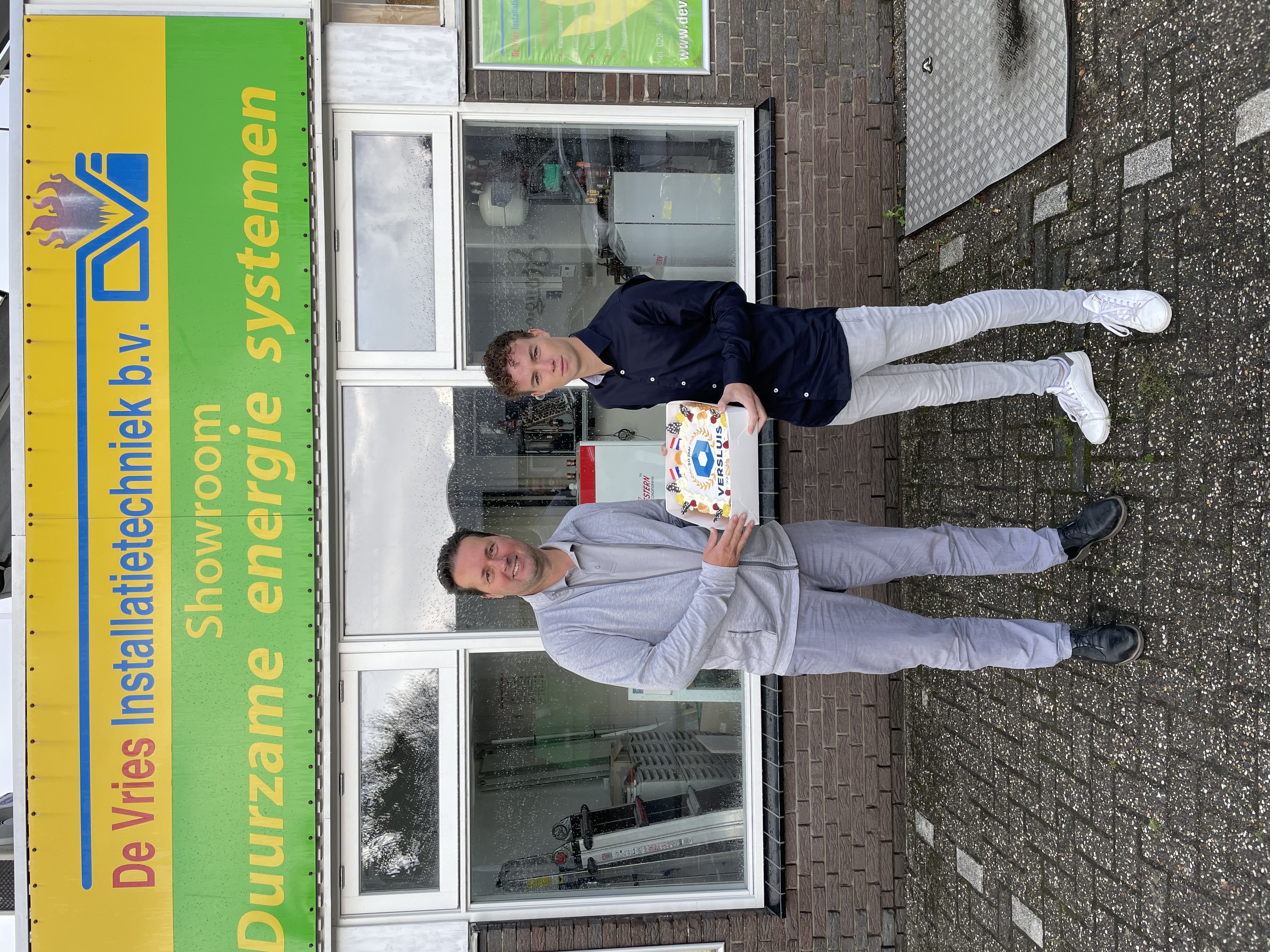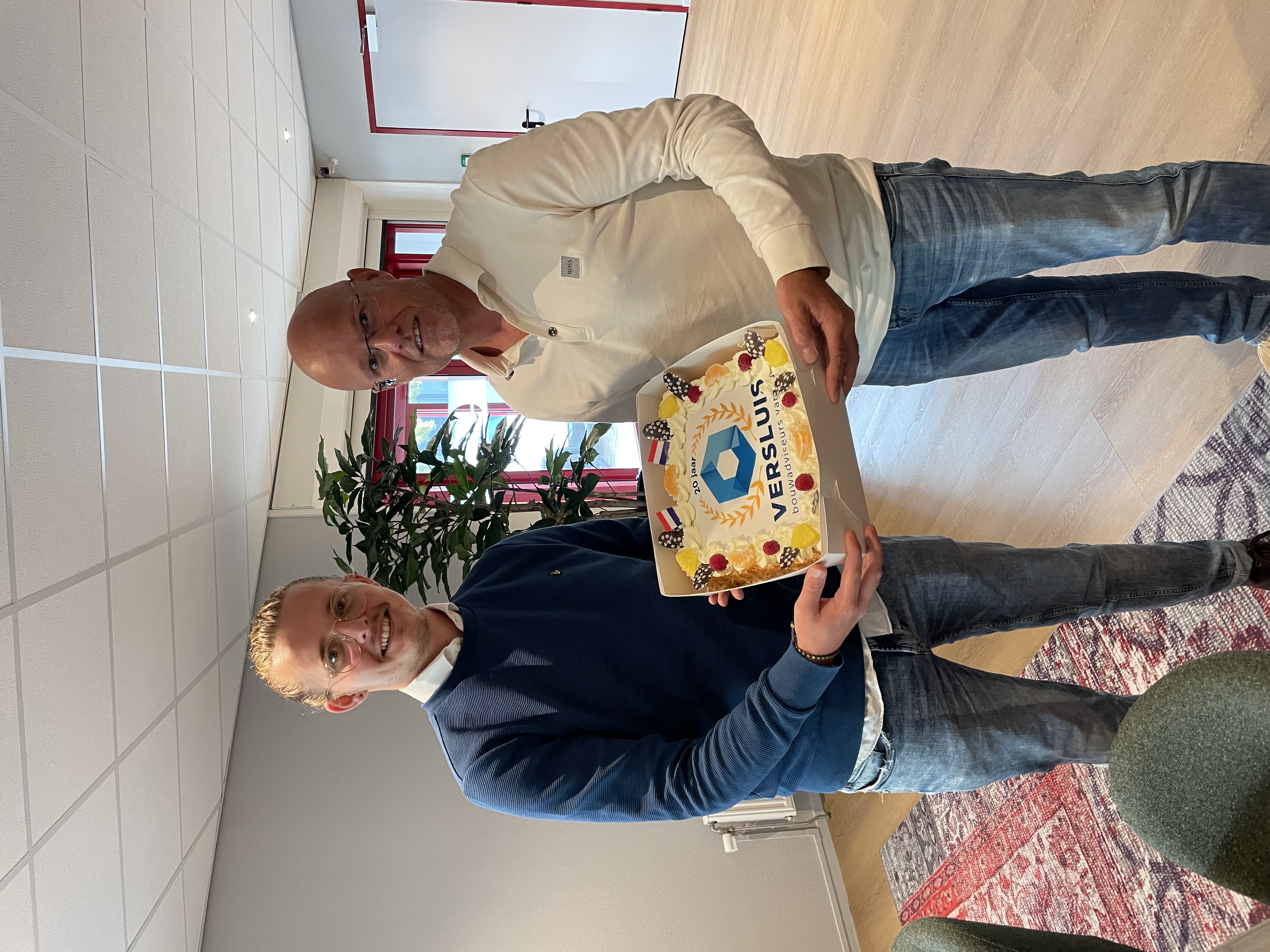 Om de aannemers en de scholen te bedanken voor de fijne en goede samenwerking zijn Tom Dijkers, Robin Klootwijk en Wout Massée in de Versluis mobiel langs geweest om taarten rond te brengen